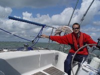 Kees werd ook op het laatste moment gevraagd mee te gaan. Kees bracht een reddingsvlot mee (dat scheelde dus weer in de kosten 😉. en hij had ook nog een halfwinder voor een Hanse 401 liggen. Deze laatste bleek helaas een paar meter te groot voor de Elan 333. Dan toch maar op weg met de iets te kleine halfwinder van de Windruis.