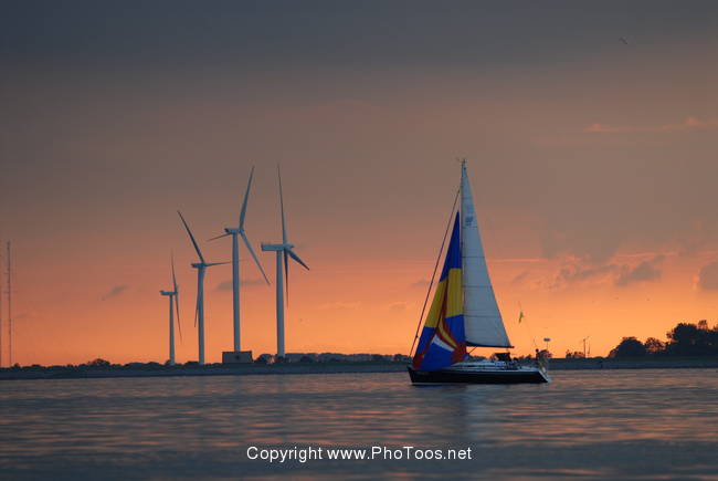 Tijdens de aanloop van het Naviduct waren wij blijkbaar onvoldoende allert, want wij kwamen onder de dijk en de windmolens uit en wij realiseerden ons pas erg laat dat wij helemaal verkeerd zaten. Samen met een paar andere schepen, die ons blijkbaar hadden gevolgd, zetten wij toch koers naar de havenlichten van de kom. De lichten van de sluis waren net op rood gegaan, maar het duurde niet lang voordat wij groen kregen.